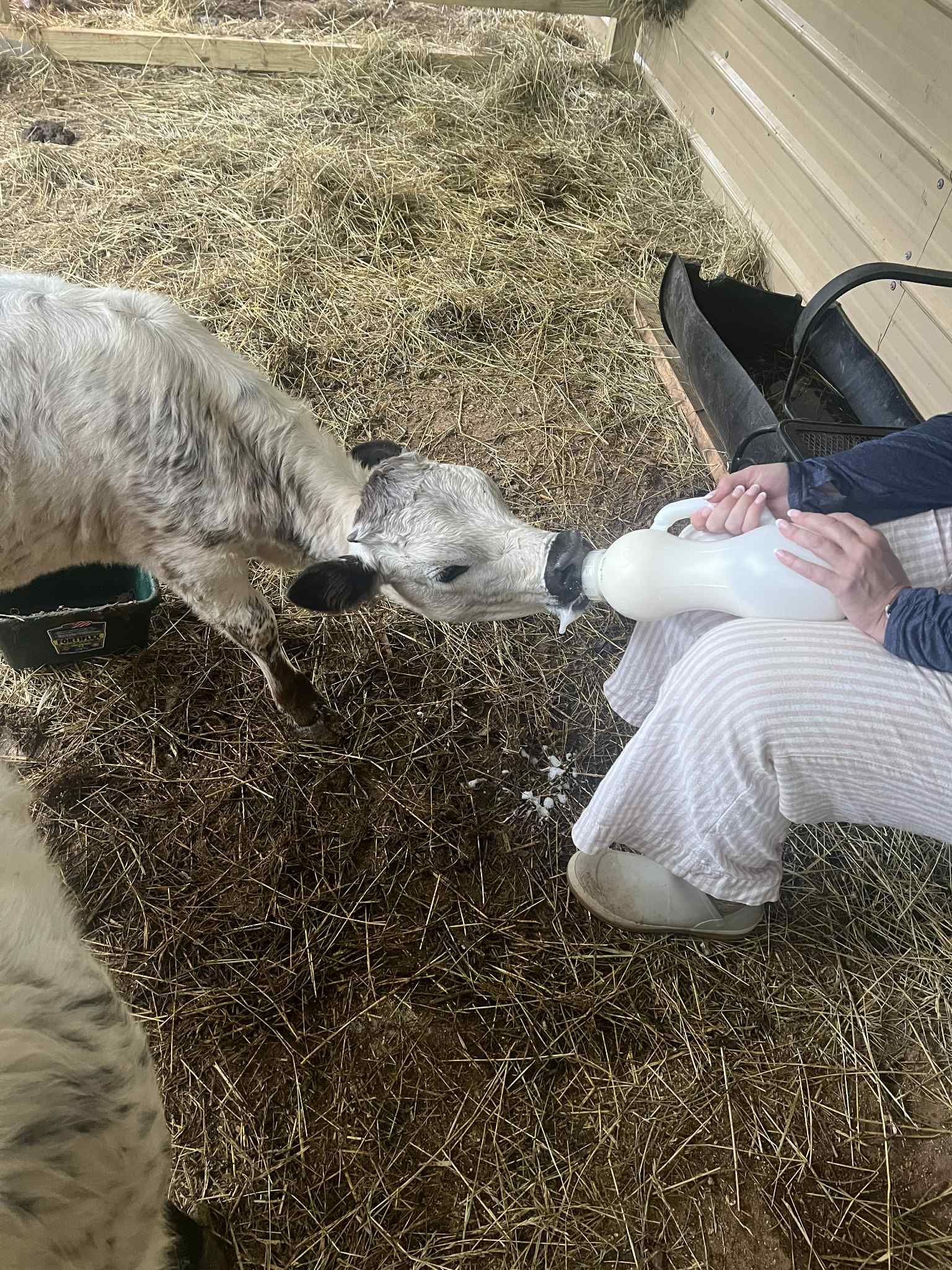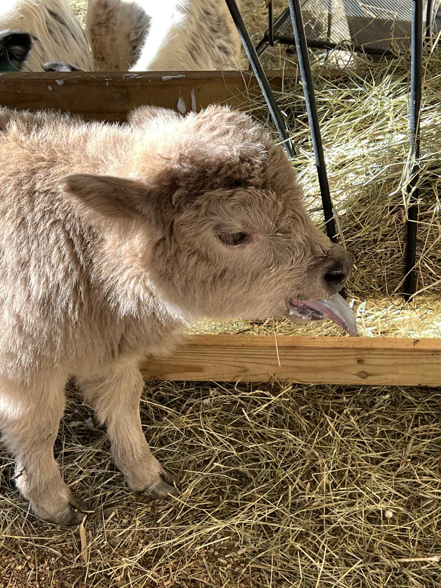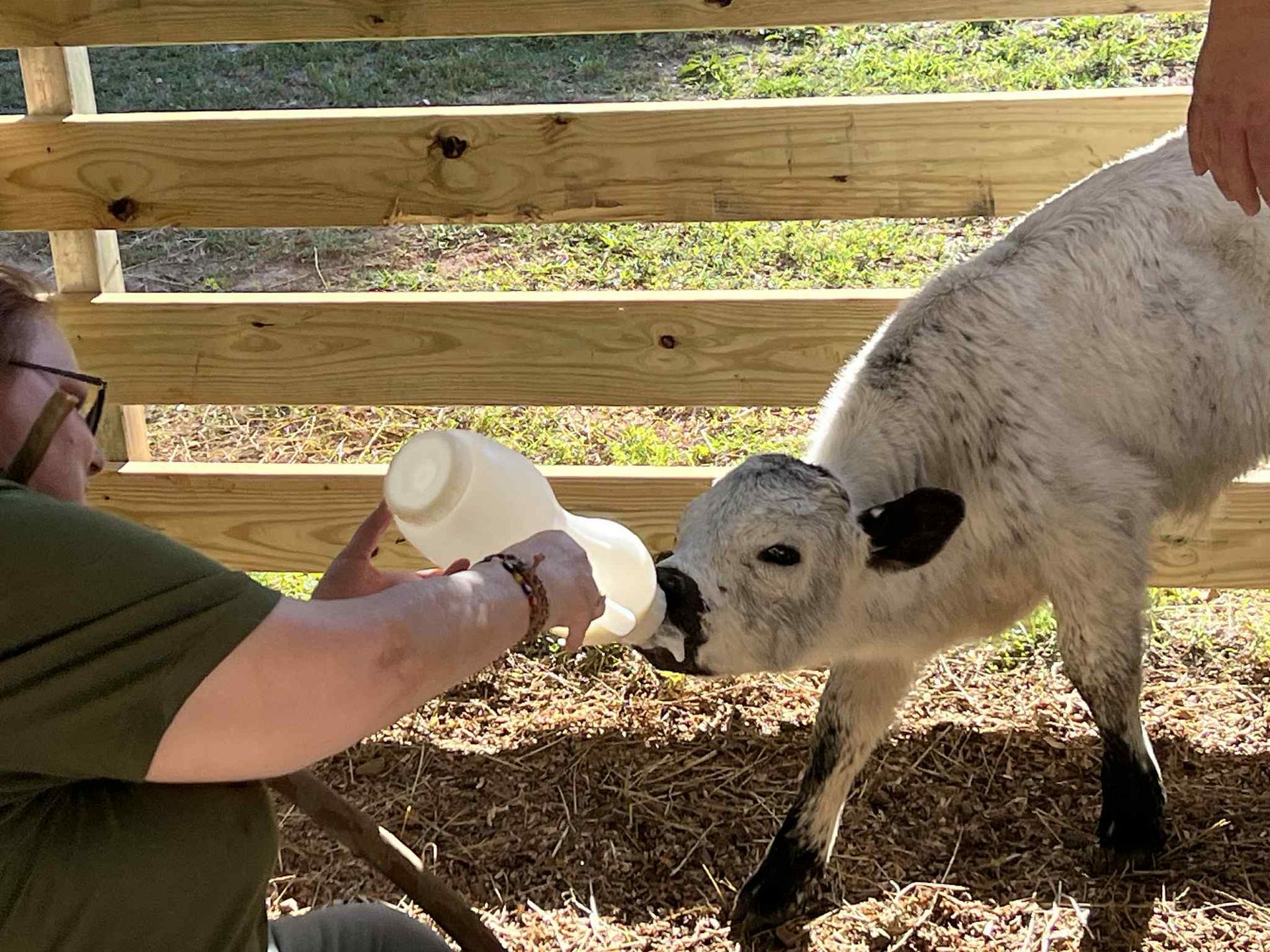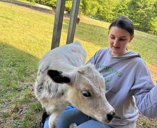 Charlotte is the tiniest member of the Moo Crew—and already a standout on the farm. Arriving at just one week old, she has quickly settled in with playful energy, boundless curiosity, and a strong affection for her bottle. With her petite frame and lively spirit, Charlotte is capturing hearts and attention alike.