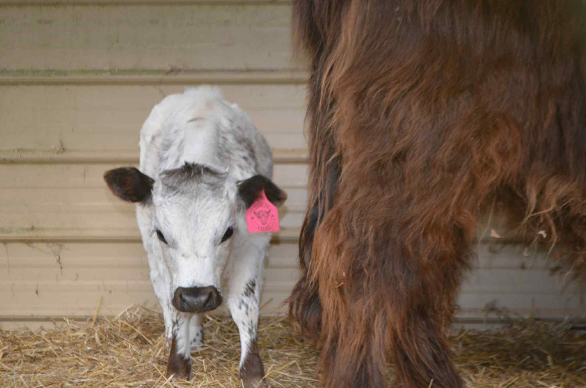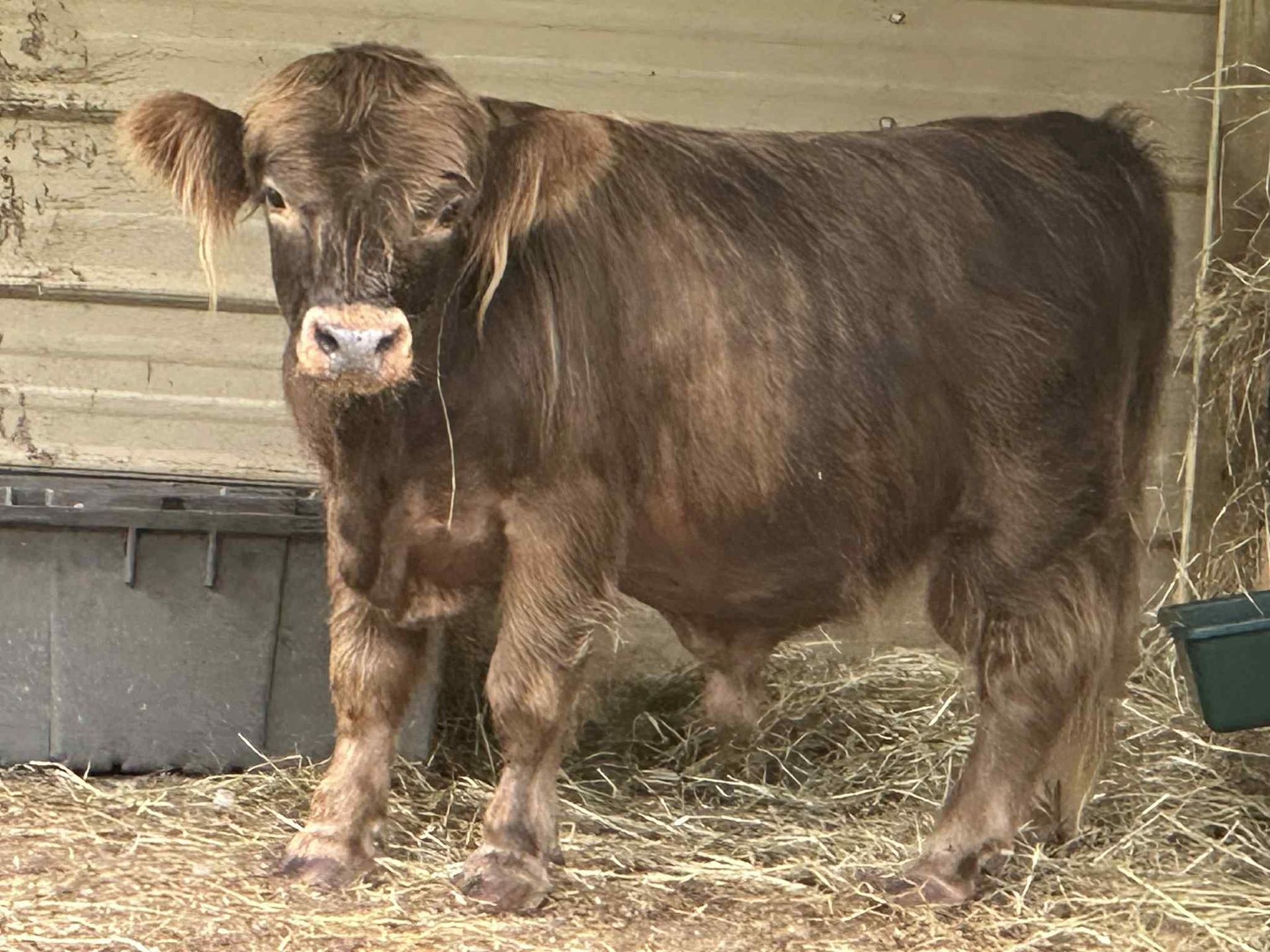 This handsome Highpark calf is already living up to his pedigree. Bottle-raised and deeply bonded with people, Diesel prefers human company over pasture mates, making him an exceptionally personable and engaging presence on the farm. His playful spirit, affectionate nature, and photogenic looks have quickly earned him a devoted fan base.