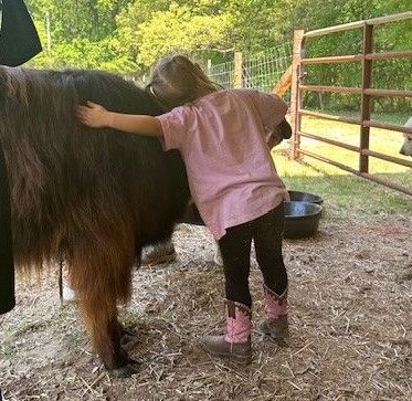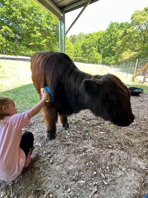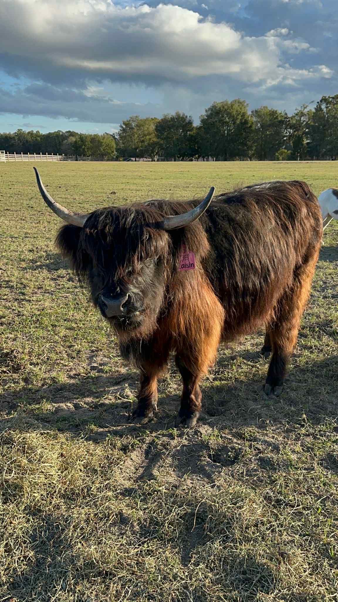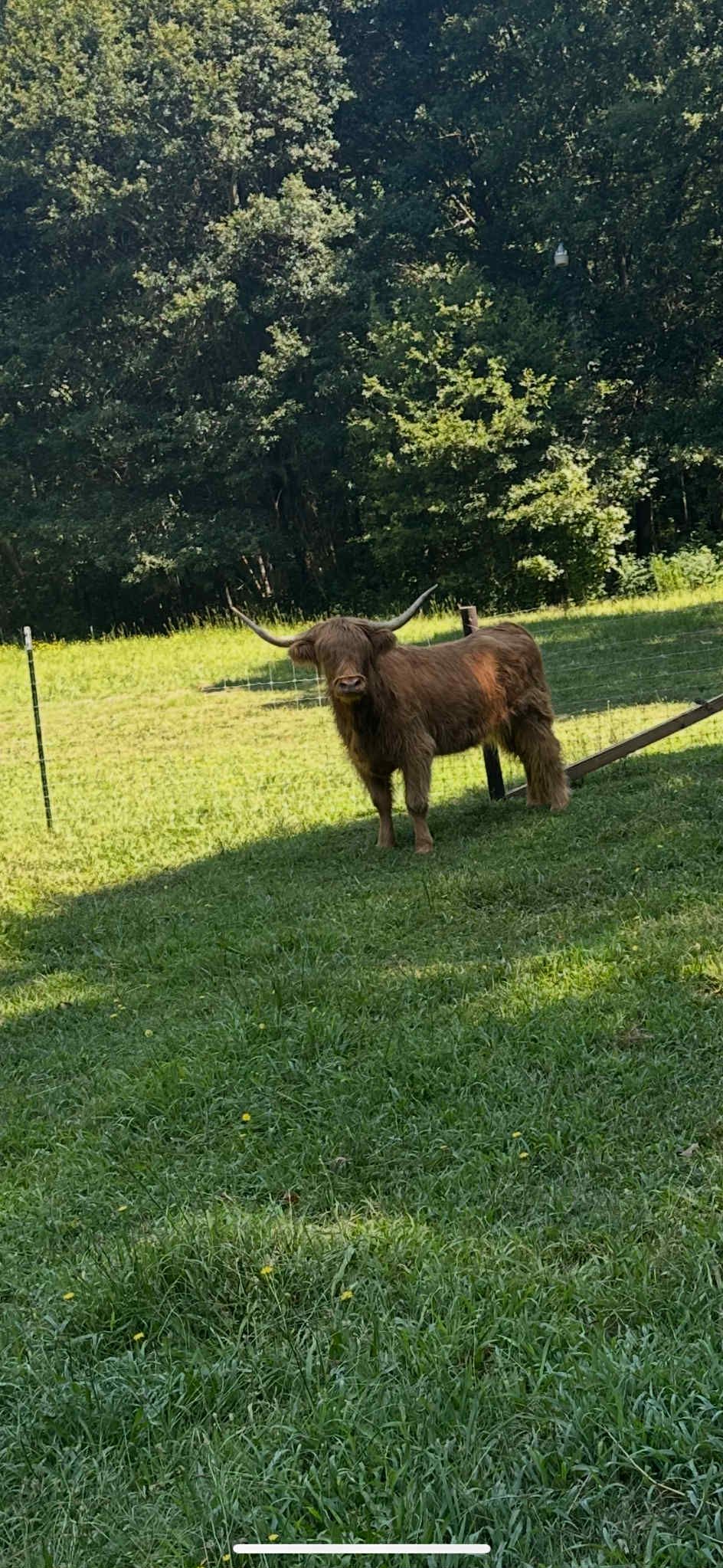 MayBel is a thoughtful Highland heifer with a quiet charm and a naturally observant nature. She tends to take her time, often watching from the sidelines before choosing to engage—but when she does, her curiosity and spirited personality shine through. Her halter training is progressing well, and she’s responding with patience and growing confidence, showing great potential for future handling and interaction.