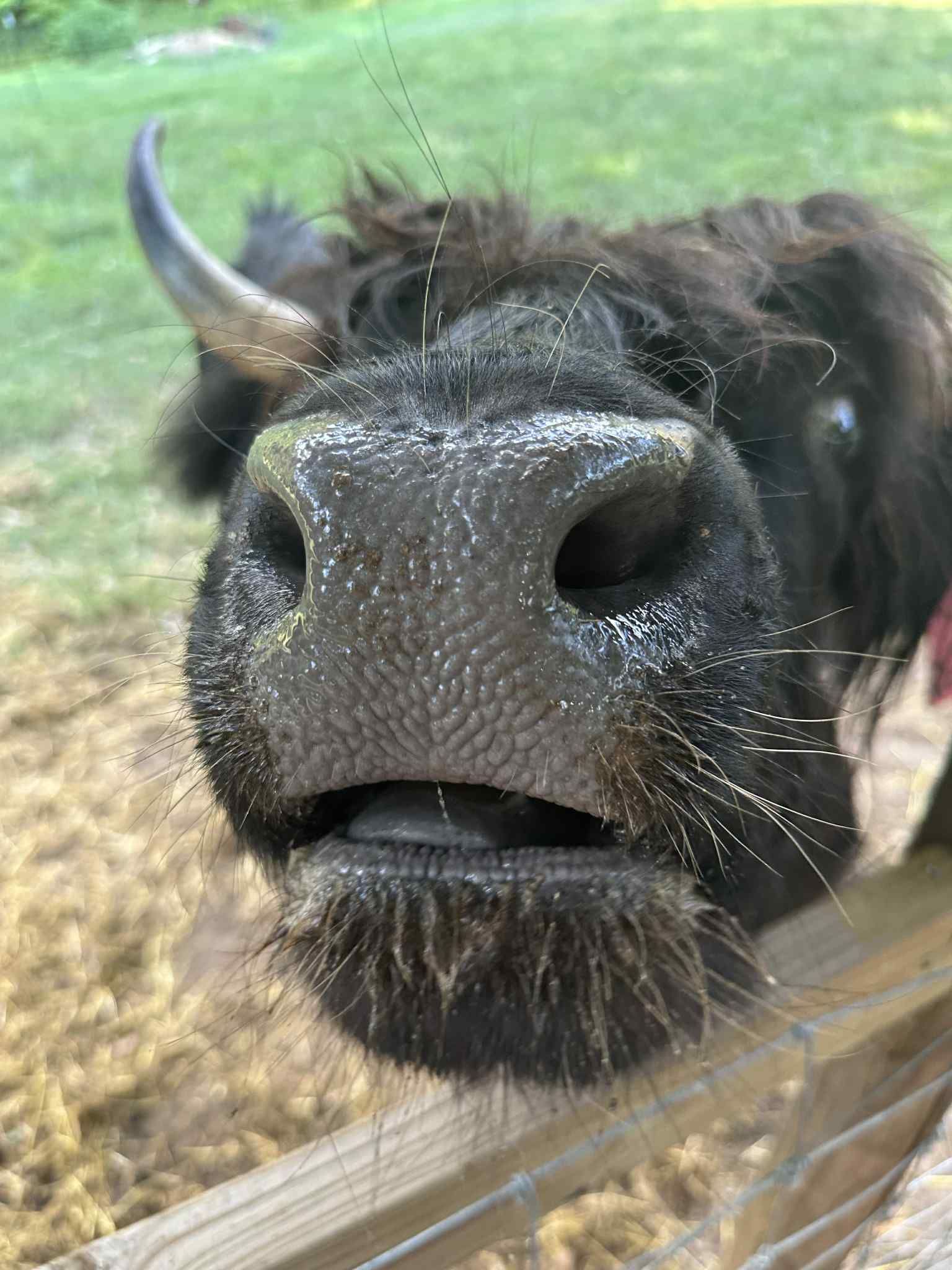 Say hello to our Moo Crew—a charming mix of Highland, Highpark and Jersey cattle with soft noses, big personalities, and plenty of fluff to go around. Each one is a little different: some love a good cuddle, others lean in for a brush or a treat, but all of them are raised with kindness, calm, and lots of love.
