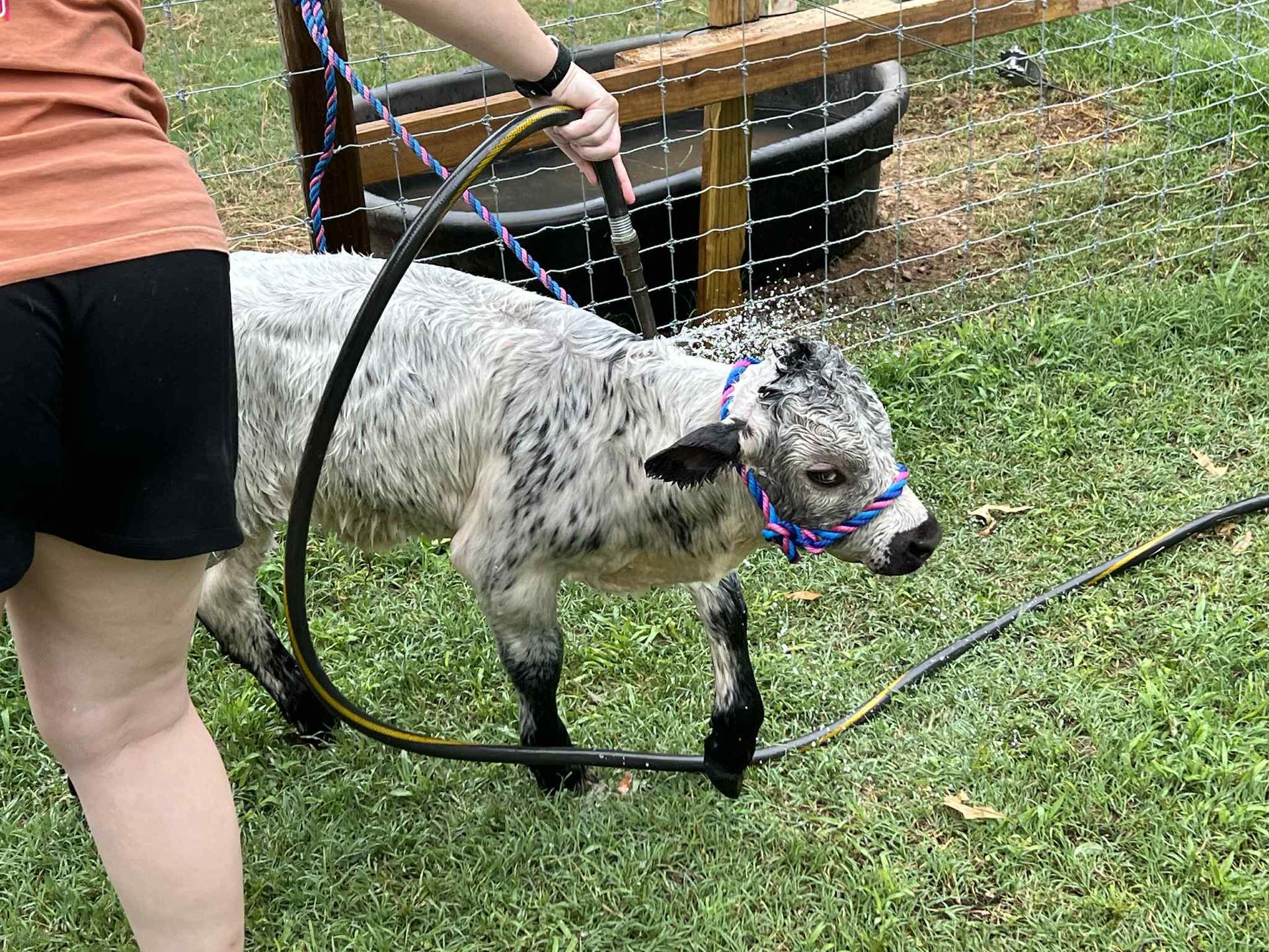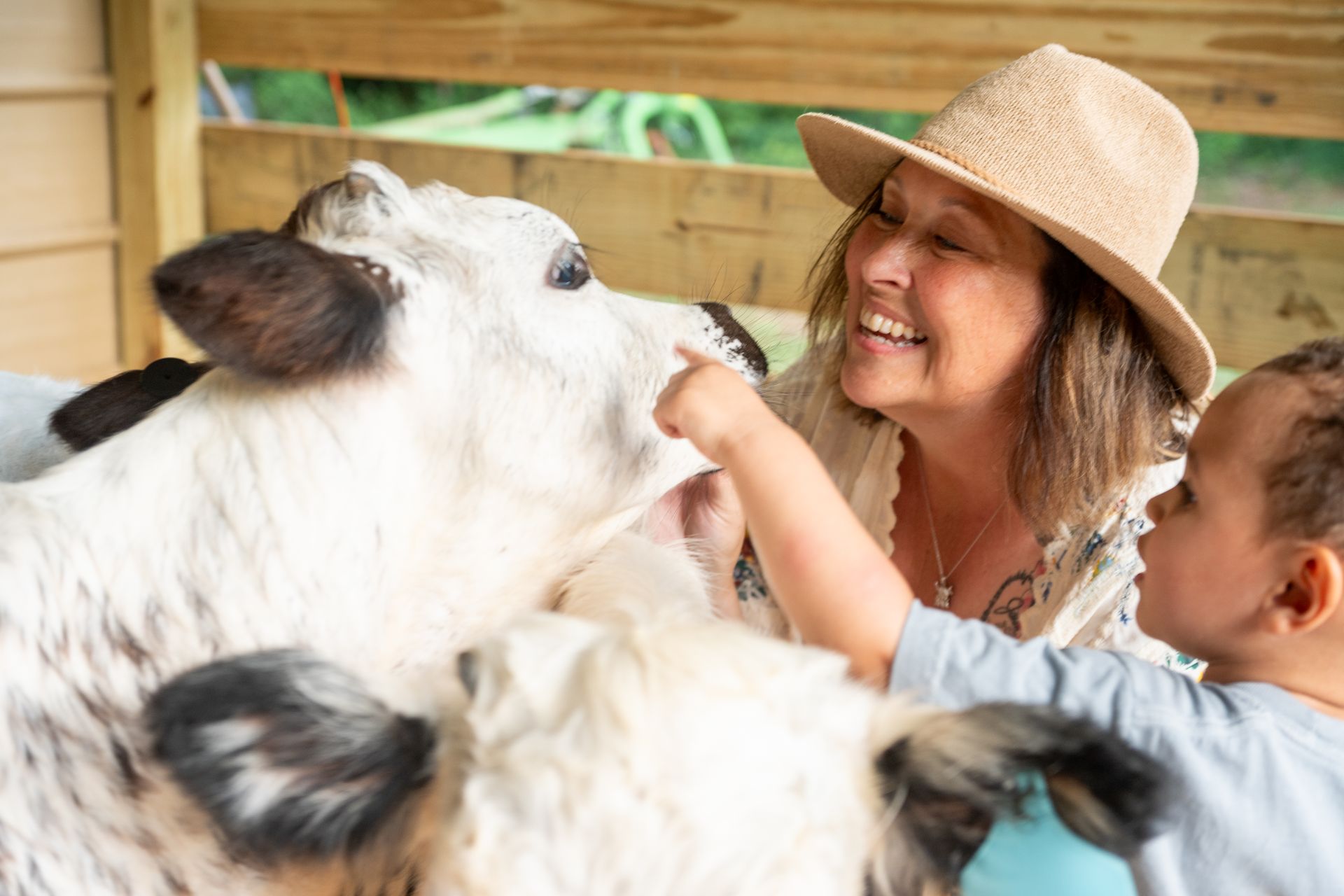 We’ve hand-selected our herd from gentle, well-loved bloodlines to create not just a strong breeding program, but a herd that feels like family. Whether they’re greeting guests, playing in the pasture, or getting ready for their next big moment, every cow here brings something special to Lucky Pennie Farms.