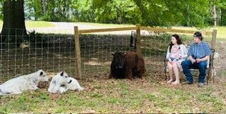 Hazel is a quietly curious member of the herd who has gradually learned to trust us and has started to grow more comfortable around people. While she’s still a bit hesitant about strangers, her curiosity often brings her to the fence to sniff a hand or accept a treat. She has even started to allow guests to pet her head and rub her chin on occasion.