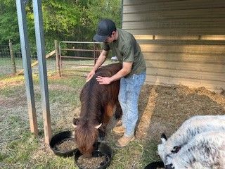 His calm demeanor and approachable personality make him a favorite among both visitors and herd mates. Whether quietly observing or engaging with those around him, Frank exemplifies the kind of quiet leadership and emotional intelligence that defines the best of miniature cattle.